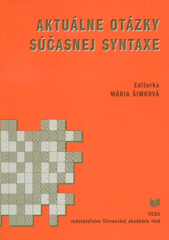 Zborník príspevkov z konferencie Aktuálne otázky súčasnej syntaxe, ktorú usporiadal Jazykovedný ústav Ľudovíta Štúra Slovenskej akadémie vied, Jazykovedná spoločnosť pri Slovenskej akadémii vied a Pedagogická fakulta v Bratislave pod záštitou a za podpory Ministerstva kultúry Slovenskej republiky.