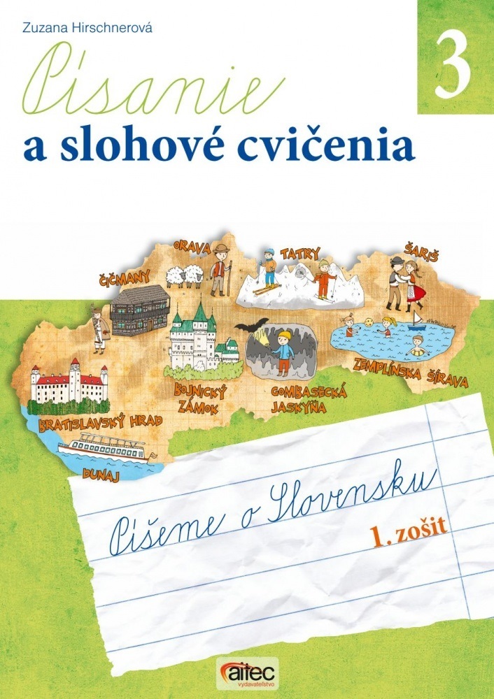 Titul Písanie a slohové cvičenia 3 s podnázvom Píšeme o Slovensku od autorky platných učebníc slovenského jazyka pre 1. stupeň základných škôl Zuzany Hirschnerovej je pracovný zošit, ktorý sa skladá z dvoch častí. Obsahuje samostatné dvojstrany, určené jednotlivým písmenám v abecednom poradí....