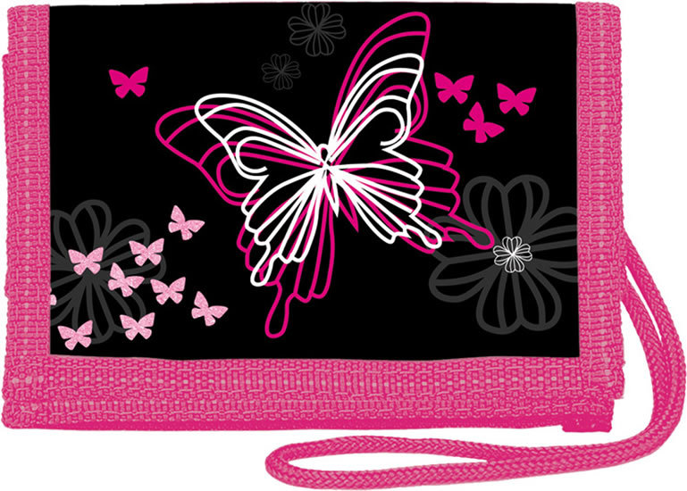 Školní peněženka na krk se šňůrkou a suchým zipem, 5 kapsami a průhlednou kapsičkou na průkazku. Rozměr 126x80 mm. číst celé