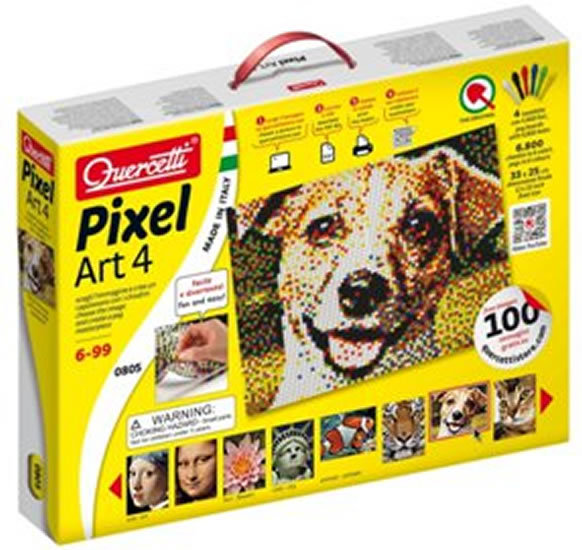 Vytvořte si krásný obraz pomocí kolíčků. Díky Pixel Art je tvorba úchvatných portrétů, reprodukcí uměleckých děl, obrázků zvířat či světoznámých staveb pomocí kolíčků značky Quercetti dostupná každému bez ohledu na věk. Jednoduše si otevřete galerii Pixel Art Bank na adrese www.pygmalino.cz, vytiskněte si předlohy, rozložte je na základní desky, vložte kolíčky a teprve pak to začne! Kolíčky jsou totiž sice jen v šesti barvách, když se však podíváte ze správné vzdálenosti, jakoby zázrakem splynou a vytvoří obrázek s tisíci nových barev a odstínů, jako by se jednalo o skutečnou fotografii. Jde o princip tzv. optického mísení barev, tedy mísení barev v oku diváka, který používal umělecký směr pointilismus na konci 19. století.