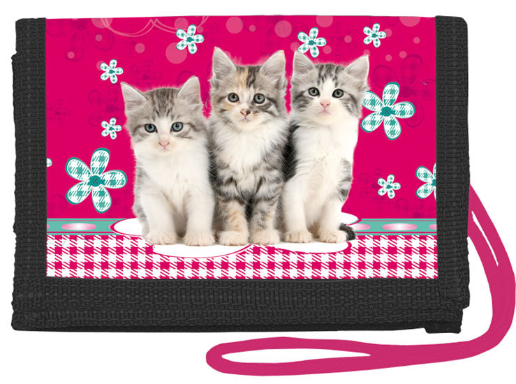 Školní peněnženka na krk se šňůrkou a suchým zipem, 5 kapsami a průhlednou kapsičkou na průkazku. Rozměr 126x80 mm.