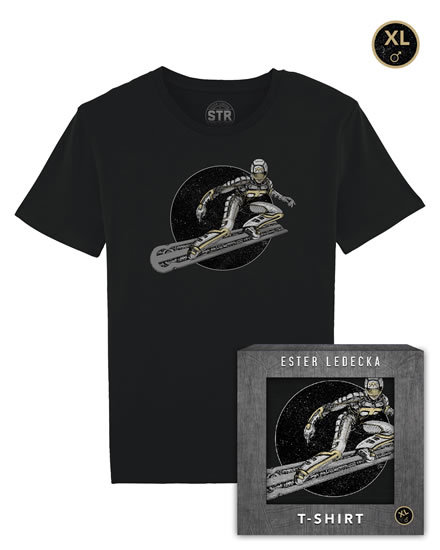 Tričko s Ester Ledeckou v akci - ve stylové dárkové krabičce. Materiál: 100% biobavlna, prát na 40 °C, žehlit po rubové straně, nebělit, nesušit v sušičce, nelze chemicky čistit. Hrudník 57 cm Délka trička 75,5 cm Délka rukávu 21,5 cm číst celé