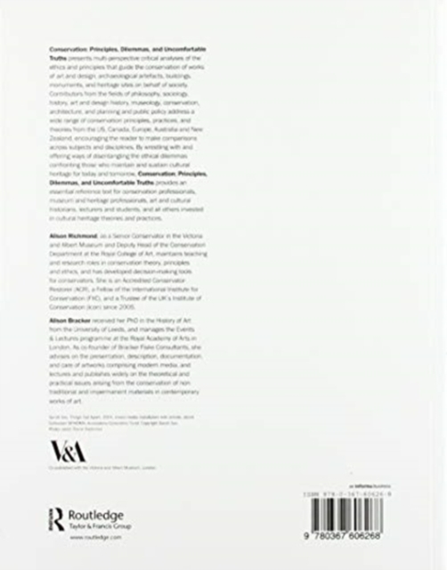 'Conservation: Principles, Dilemmas, and Uncomfortable Truths' presents multi-perspective critical analyses of the ethics and principles that guide the conservation of works of art and design, archaeological artefacts, buildings, monuments, and heritage sites on behalf of society. Contributors...