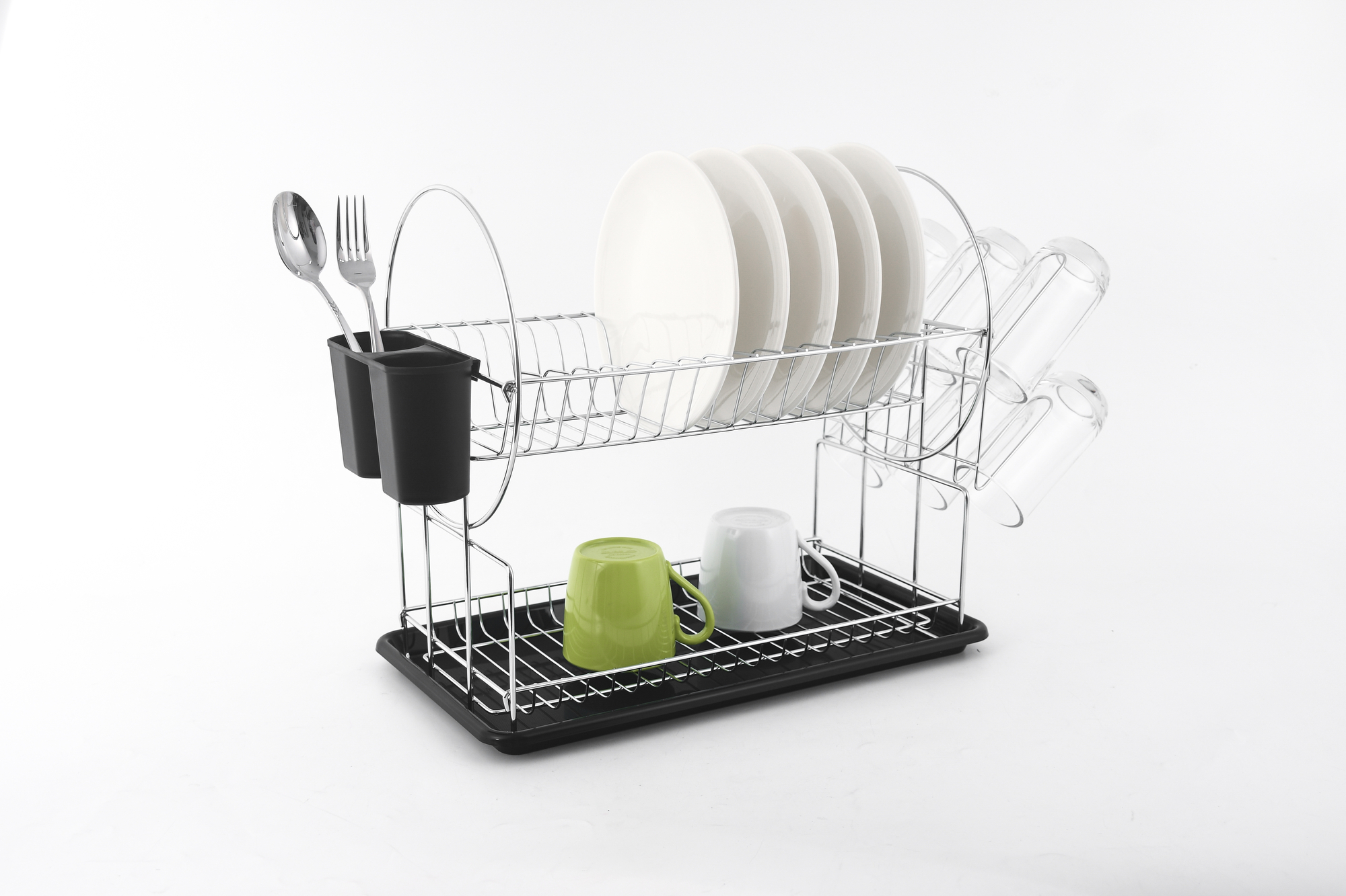 Dwupiętrowy ociekacz na naczynia z serii BASIC KITCHEN.Posiada chromowany stelaż i czarną podstawkę.Ociekacz na naczynia z serii BASIC KITCHEN to praktyczne i stylowe rozwiązanie dokażdej kuchni. Wykonany z metalu w kolorze srebrnym, zapewnia trwałośćtrwałość i elegancki wygląd, pasujący zarówno do nowoczesnych, jak i klasycznych aranżacji wnętrz.Wyposażony w czarną podstawkę z tworzywa sztucznego, skutecznie odprowadza wodę, pomagając utrzymać porządek na blacie. Dodatkowo posiada specjalny ociekacz na sztućce, co ułatwia organizację naczyń po umyciu. Dzięki swoim wymiarom 51x23,5x36,5CM psiada przestrzeń na talerze, kubki i inne naczynia, jednocześnie pozostając kompaktowym i łatwym do dopasowania w kuchennejprzestrzeni. To funkcjonalne i estetyczne akcesorium, które usprawni codzienne zmywanie naczyń. wymiary: 51x23,5x36,5cmwaga:1,23kg