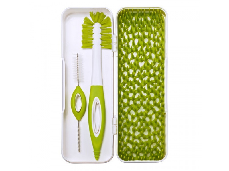 Tato sada obsahuje kartáč pro mytí lahviček a saviček a také trávníkový odkapávač. Set lze jednoduše uzavřít do praktického pouzdra a vzít kamkoli s sebou.