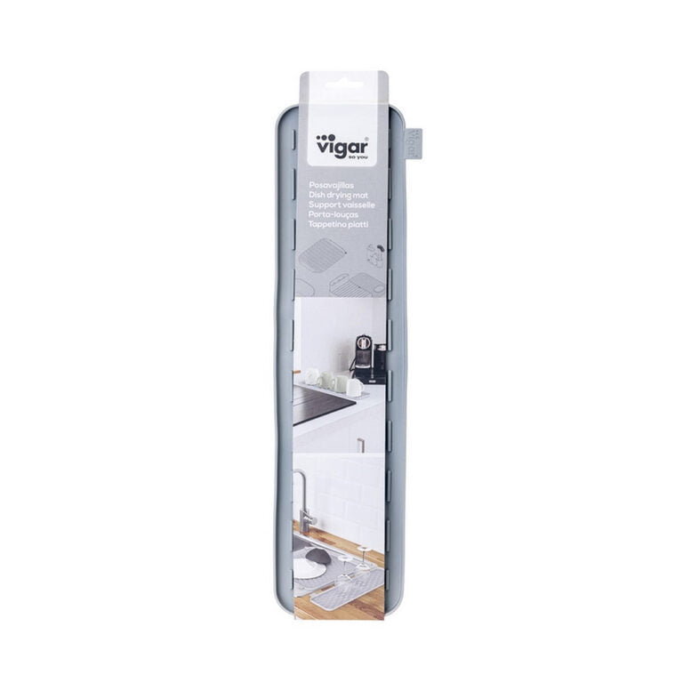 -Protiskluzová podložka na nádobí a příbory -Zvýšená konstrukce umožňuje účinný odvod vody a dobré větrání pro optimální sušení -Složitelná pro skladováníMateriál: SilikonRozměry: 40 x 10 x 1 cmVIGAR