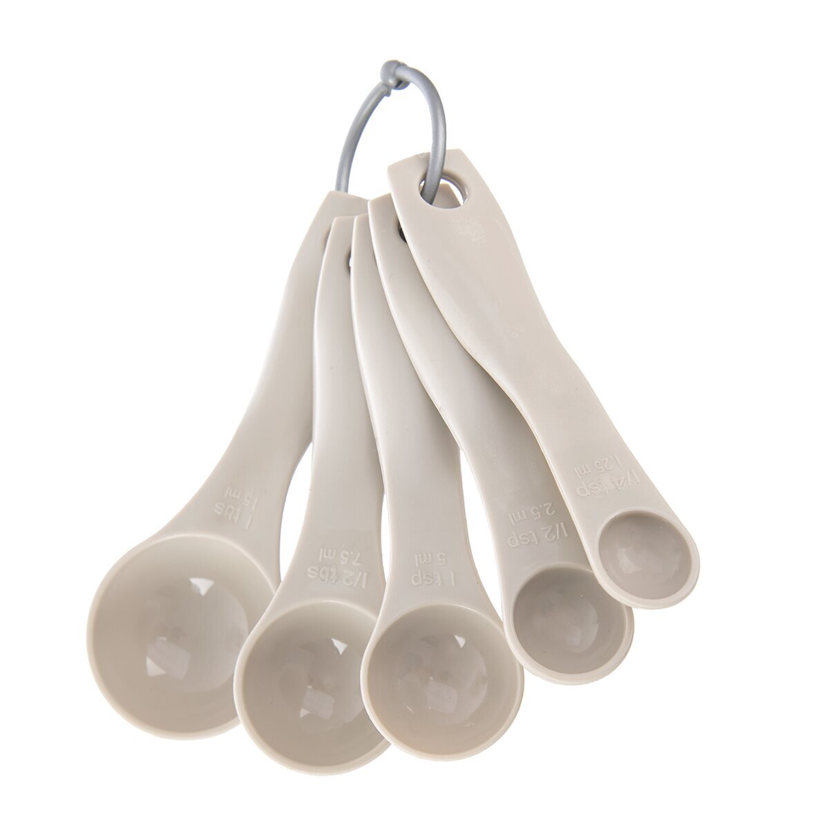 S touto sadou 5 odměrek bude vaše pečení a vaření o poznání jednoduší. Budou se hodit tam, kde je potřeba přesné odměřování malého množství surovin jako je koření a různá dochucovadla. Odměrky jsou zavěšeny na plastovém kroužku, který lze jednoduše rozpojit a vzít z něho konkrétní odměrku. Také do sebe dokonale zapadají, což usnadňuje jejich skladování, zaberou jen minimum místa nebo je lze zavěsit a mít je tak vždy po ruce. Materiál: plast PS. Rozměry: 1,25 ml - pr. 1,8 cm, d. 11 cm, 2,5 ml - pr. 2,2 cm, d. 11,2 cm, 5 ml - pr. 2,9 cm, d. 11,5 cm, 7,5 ml - pr. 3,2 cm, d. 11,7 cm a 15 ml - pr. 4 cm, d. 12,2 cm. Odměrky jsou označeny mírou v ml a také mírou v polévkových lžících (tbs) a lžičkách (tsp). Lze mýt v myčce.
