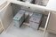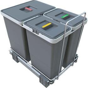 Koše se vysouvají z pevně zabudovaných pojezdů ve skříňce po otevření dvířek a vytahování je plné, takže se pohodlně dostanete ke každé nádobě