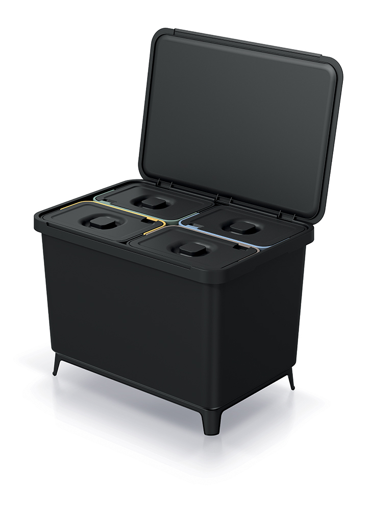 Odpadkový koš SYSTEMA -obejm: 4x10 l, barva: recyklovaná černá