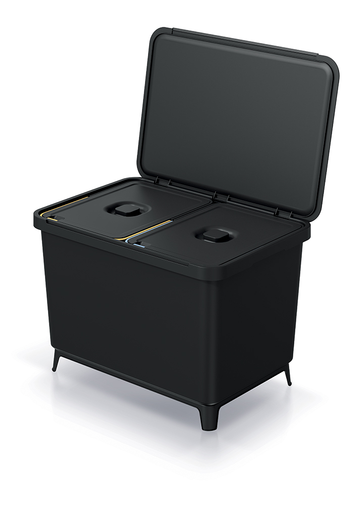 Odpadkový koš SYSTEMA - objem: 2x23 l, barva: recyklovaná černá