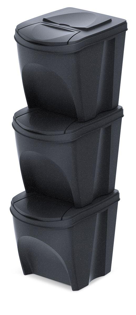 Sada 3 odpadkových košů SORTIBOX ECO WOOD - objem 3x25 l, barva: antracit ECO