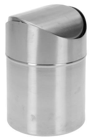 Odpadkový koš s výklopným víkem Materiál: 18/10 nerezová ocel Vhodný k umístění na stole, v koupelně, apod., určený pro drobný odpad Rozměry: 12 x 16 cm