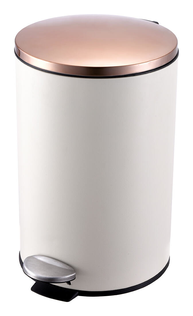 Díky funkci jemného zavírání víka minimalizuje nepříjemné zápachy a zaručuje, že koš zůstane vždy elegantně uzavřený. Kombinace bílé barvy těla a měděného víka působí moderně a přitahuje pozornost, aniž by rušila vaše okolí.