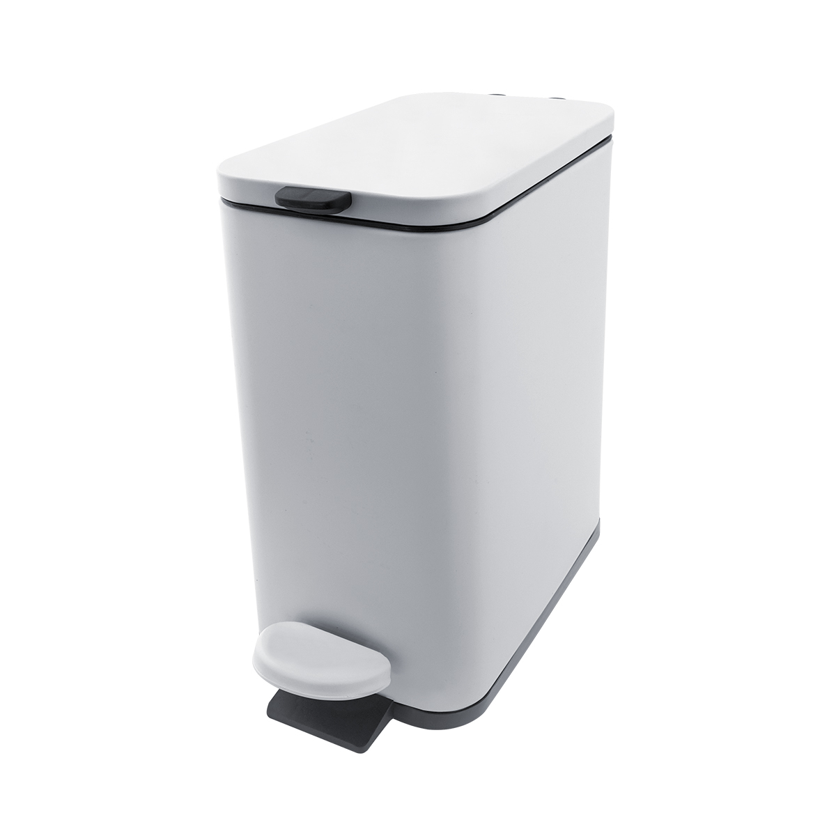 Odpadkový koš do koupelny s nášlapem o objemu 5l bílý mat má oblé hrany, obdélníkový tvar víka a vyjímatelný vnitřní koš. Díky užší čelní a delším bočním stranám je skvělým doplňkem vedle WC, kde je zhoršený přístup. Víko má na čelní straně navíc malý úchyt pro komfortnější otevírání rukou, což se hodí, třeba když zrovna sedíte na WC. Měkké dovírání soft close zajišťuje tiché uzavření koše po uvolnění pedálu nebo víka. Kromě bílé barvy těla a víka koše, je bíle barvený i pedál (barva se neloupe), což přináší čistý design kombinace černé a bílé. Jedná se o vysoce kvalitní a prakticky řešený odpadkový koš do koupelny, či k WC.