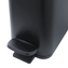 Odpadkový koš do koupelny s nášlapem o objemu 5l černý mat má oblé hrany, obdélníkový tvar víka a vyjímatelný vnitřní koš. Díky užší čelní a delším bočním stranám je skvělým doplňkem vedle WC, kde je zhoršený přístup. Víko má na čelní straně navíc malý úchyt pro komfortnější otevírání rukou, což se hodí, třeba když zrovna sedíte na WC. Měkké dovírání soft close zajišťuje tiché uzavření koše po uvolnění pedálu nebo víka. Kromě černé barvy těla a víka koše, je černě barvený i pedál (barva se neloupe), což přináší čistý design kombinace černé. Jedná se o vysoce kvalitní a prakticky řešený odpadkový koš do koupelny, či k WC.