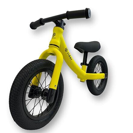 My Hood Rider Odrážedlo - žlutéOdrážecí kolo Rider váží pouhých 3,5 kg , což z něj dělá ideální kolo pro nejmenší děti. Kolo se lehce ovládá, pomáhá rozvíjet rovnováhu a motorické schopnosti dítěte. Sedlo má nastavitelnou výšku. Minimální výška dítěte pro použití tohoto kola by měla být 85 cm, a maximální hmotnost by neměla přesáhnout 20 kg. Odrážedlo nemá brzdu, a proto by nemělo být používáno v bezprostředním okolí schodů nebo svahů. Doporučujeme používat přilbu, ochranu loktů, zápěstí a kolen.Parametry odrážedla Rider:rám: hliníkvidlice: hliník12" hliníkový ráfekkola se širokými pneumatikamipolstrování na řídítkáchnastavení výšky sedla s rychloupínánímdélka kroku: 32,5-37,5 cmvýška řídítek: 50 cmdélka: 86 cmhmotnost: 3,5 kgmaximální zatížení: 25 kg