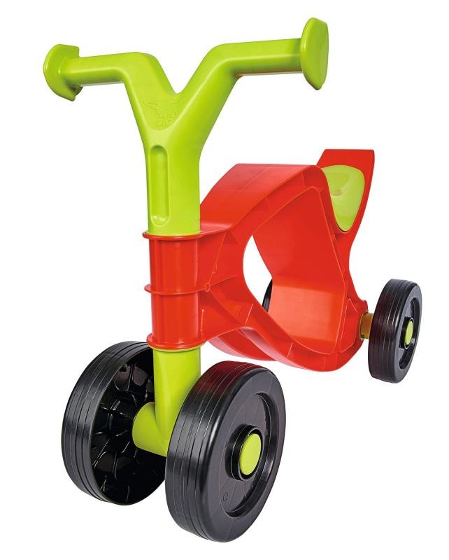 Odrážedlo v červenozeleném barevném provedení má 4 kolečka pro lepší stabilitu i bezpečnost dítěte. Kvalitní a odolný plast. Výška řídítek od země 36 cm. Výška sedátka od země cca 24 cm. Průměr kolečka 13 cm. Nosnost 25 kg. Hmotnost 0,8 kg.