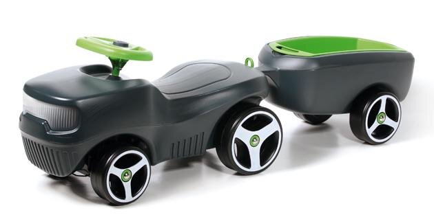 Dětské odrážedlo s přívěsem v designu traktoru. Můžete ho používat doma i venku. Rozměr: 1189×372×330 mm. Barva tmavě šedá. číst celé
