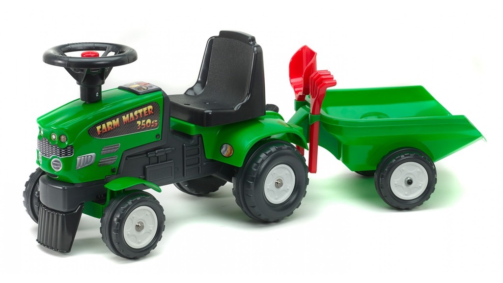 Odstrkovadlo traktor s volantemy a valníkem v zelené barvě. Z vysoce kvalitního a odolného plastu. Součástí traktoru je klakson, vlaník, lopatka a hrabičky. Velikost 97×30×37 cm. Doporučený věk od 1 roku. Všechny odstrkovadla Falk jsou testovány na 30kg - dle požadavků evropských norem. Vyrobeno...