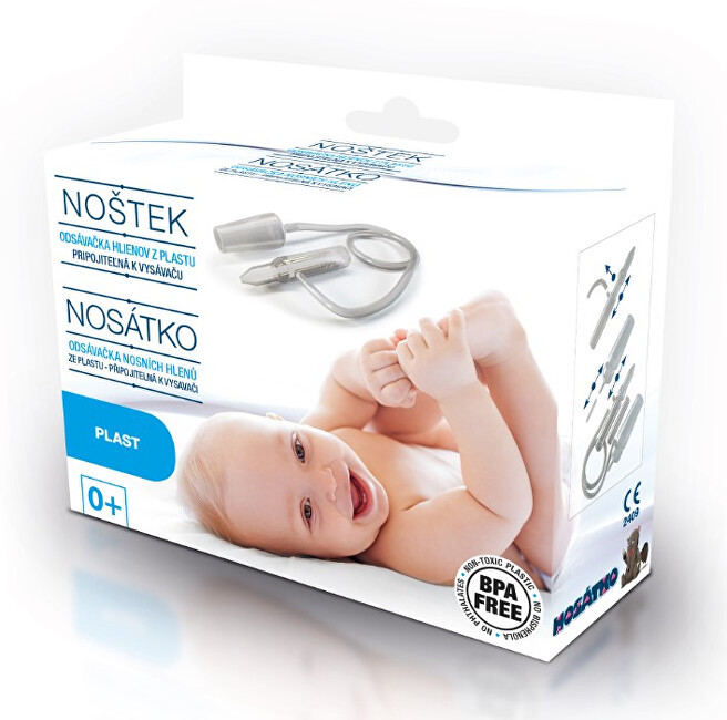 Odsávačka nosních hlenů z plastu je založena na nejúčinnější odsávací technologii. Tuto odsávačku hlenů lze připojit k domácímu vysavači. Její konstrukce je ideální pro použití jak u novorozenců, tak u kojenců. Odsávačka je lehce rozebíratelná, jednoduše se čistí a dezinfikuje. S odsávačkou Nosátko je možné odstranit nashromážděný nosní hlen při bezpečném podtlaku 0,2 baru, nezávisle na sací síle vysavače. Odsávačka je klinicky testována, její použití je bezbolestné a nemá vedlejší účinky.
