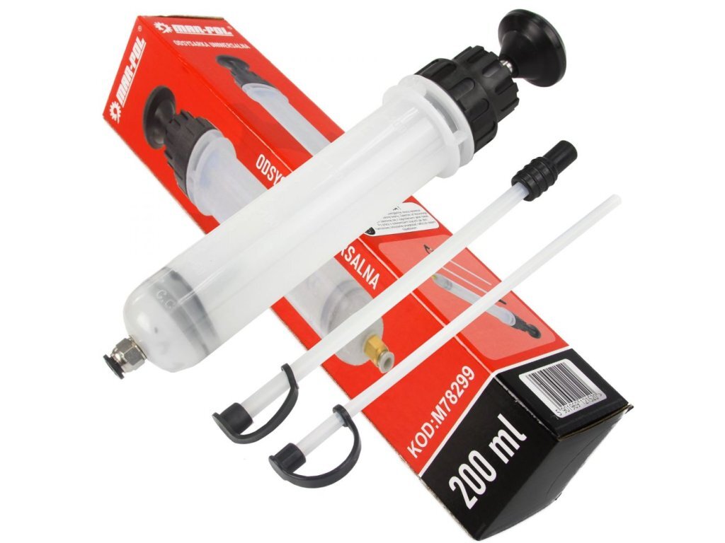 Ruční odsávačka kapalin o objemu 200 ml. Používá se pro napouštění nebo odčerpání oleje a dalších kapalin z těžko přístupných míst. Pomocník v každé dílně.