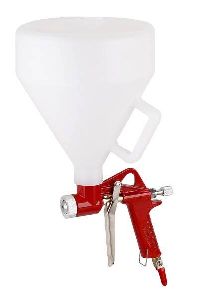 pistole stříkací se zásobníkem 5 l ideální nástroj na nanášení omítek, sadrokartonářských nátěrů, lepidel, emulzních barev apod. pracovní tlak 3 - 5 BAR, trysky 3, 6 a 8 mm, spotřeba vzduchu 100 - 200 l / min napojení na tlakovou hadici rychlospojkou