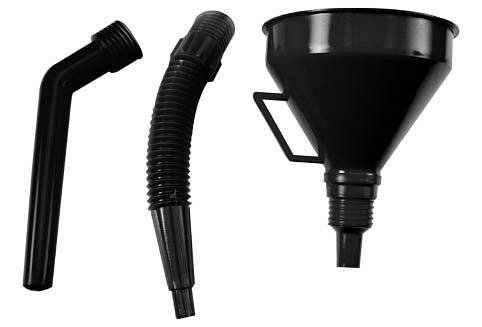 Tento set obsahuje nálevku o průměru 135 mm, která je vybavena praktickým sítkem, bránícím proniknutí nečistot do náplně. Součástí jsou také dvě výměnné koncovky - jedna pružná pro snadné nalévání do nádrží s přístupem shora, druhá zahnutá pod úhlem 50°, která usnadňuje nalévání v problematických situacích nebo těžko dostupných místech.