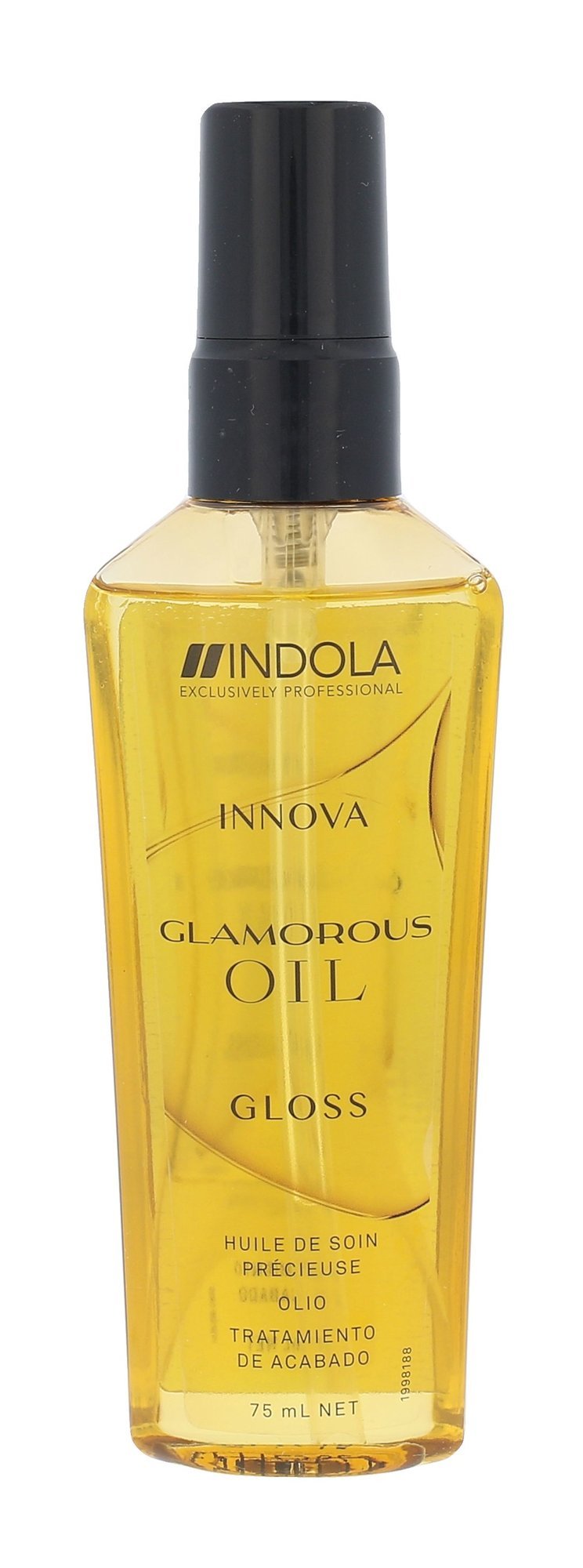 Olejová kúra **Indola Innova Glamorous Oil Gloss**. Olejová kúra Indola Innova Glamorous Oil Gloss pro hloubkovou regeneraci a lesk vlasů. Složení je obohaceno o zlaté částečky, které okamžitě dodávají vlasům oslnivý lesk. Zároveň vlasy vyživuje a zabraňuje třepení konečků. Jemné olejové složení nezatěžuje vlasy. Po použití budou vlasy vyživené a plné lesk a síly. **Použití**: Aplikujte do suchých nebo ručníkem vysušených vlasů. Upravte jako obvykle.