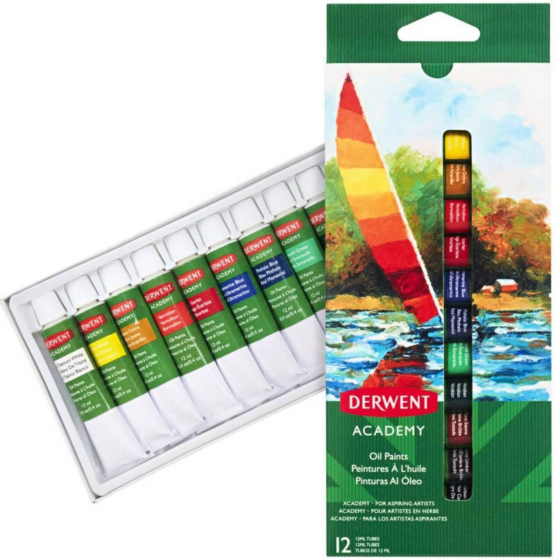 Farby olejne 12-kol. tuby 12ml Academy 23020406, Derwent