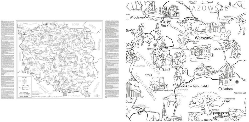 Kolorowanka XXL z mapą Polski Młodego Odkrywcy. Dzięki zawartości merytorycznej obrazka może pełnić rolę edukacyjną a zarazem być świetną rozrywką oraz sposobem na niecodzienne spędzanie czasu. Na mapie zaznaczono regiony i województwa, jak też za pomocą piktogramów najbardziej charakterystyczne...