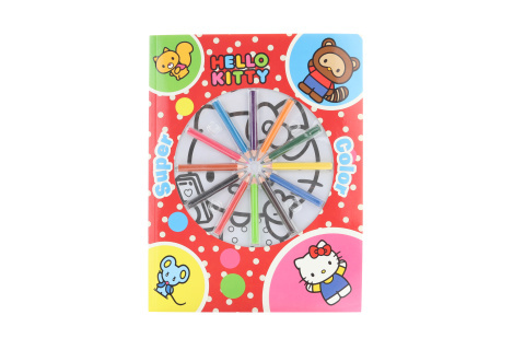 Omalovánky s motivem Hello Kitty. Balení obsahuje 12 barevných pastelek. Věk 3+ číst celé