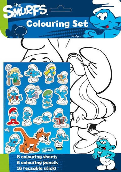Šmoulí sada omalovánek se samolepkami a pastelkami