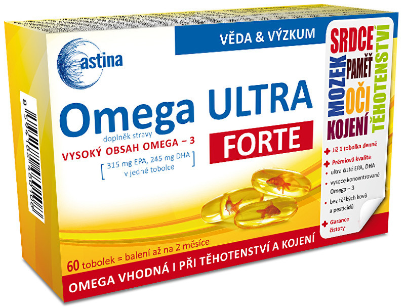 Omega ULTRA forte obsahuje vysoké množství čistých omega - 3 EPA a DHA, které přispívají k normální činnosti srdce. DHA přispívá také k udržení normálního stavu zraku a mozku, což je důležité především během těhotenství a kojení.