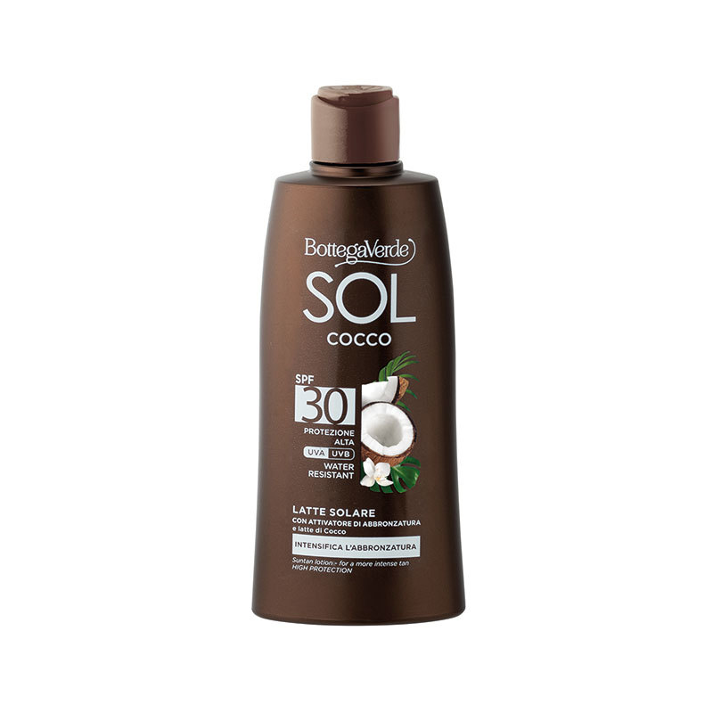 Bottega Verde SOL Voděodolné mléko na opalování SPF30, Kokos, 200 ml