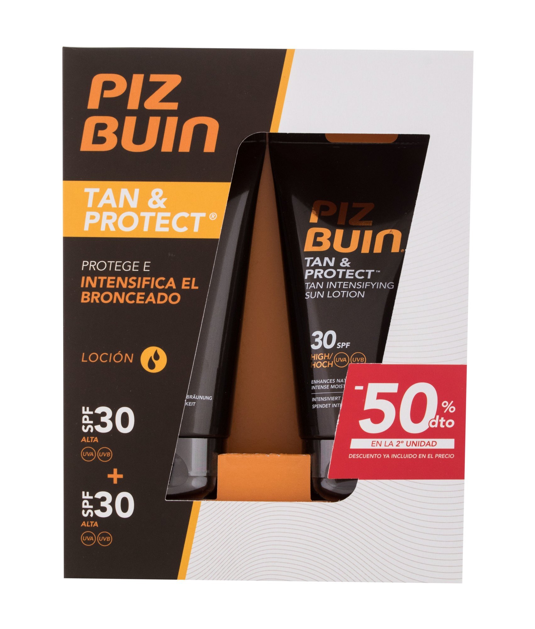DUO SET opalovacích přípravků PIZ BUIN Tan & Protect Tan Intensifying Sun Lotion vám pomůže vytěžit ze slunečních paprsků maximum. Opalovací mléko obsahuje pokročilé UV filtry, které vaši pokožku ochrání před spálením a speciální technologii Illumitone™, která zvyšuje a urychluje opálení.