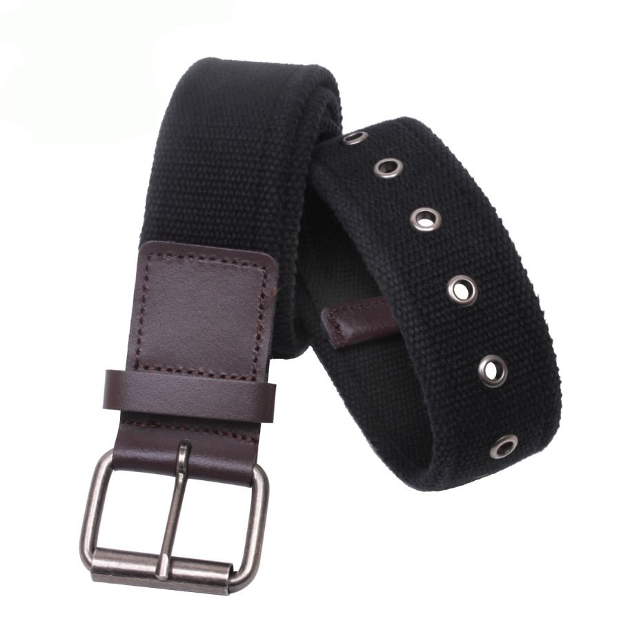 Opasek bavlněný VINTAGE s kovovou přezkou ČERNÝ