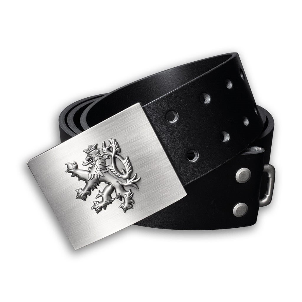 Kožený opasek Český lev s klasickým vojenským způsobem zapínání o šířce 4,5 cm. Včetně luxusní dárkové krabičky a výplně! číst celé