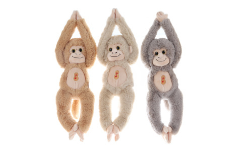 Plyš opice zvuková o velikosti cca 42 cm z hebounké plyše,ruce lze spojit suchým zipem.Provoz na 3 knoflíkové baterie umístětné uvnitř plyše.Věk 0+ číst celé