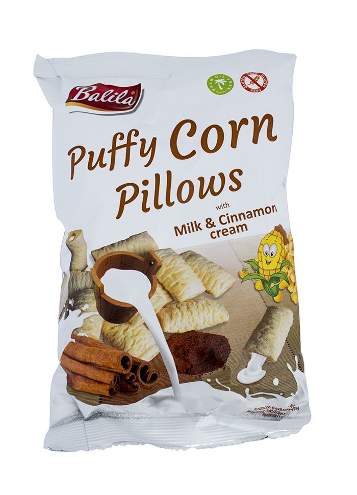 Složení: kukuřičná krupice 25%, cukr, rostlinné oleje (kokosový, slunečnicový), sušené odtučněné MLÉKO, sušená sladká SYROVÁTKA, emulgator: slunečnicový lecitin; přírodní mléčné aroma, přírodní skořicové aroma, vanilin, jedlá sůl. Trvanlivé pečivo. Extrudovaný výrobek ochucený. Bez lepku.