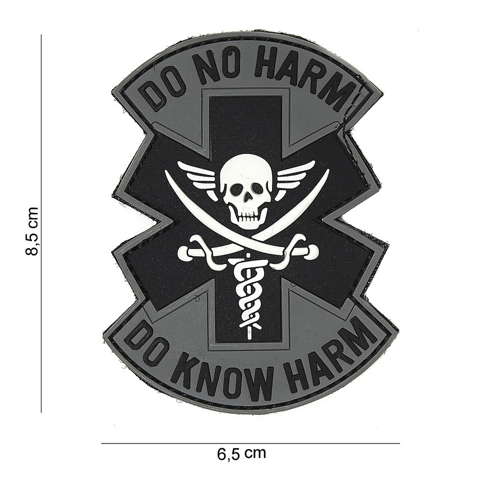 Gumová nášivka 101 Inc nápis Do no harm - šedá