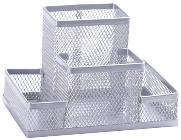 Przybornik na biurko z 4 przegrodami z metalowej siateczki powlekanej lakierem wymiary: 153x103x100mm kolor: srebrny