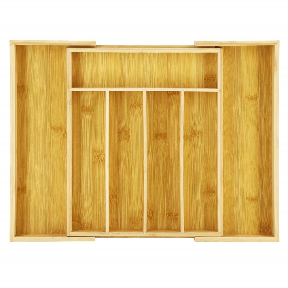 Přírodní organizér na příbory do zásuvky. Pevný materiál, odolný proti vlhkosti. Antibakteriální, nepohlcuje pachy. Pomůže udržet pořádek mezi příbory. Správně zvolený počet a velikost přihrádek, rozkládací konstrukce. Šetrné řešení do vašeho šuplíku. Zvyšuje odolnost příborů i nábytku.