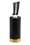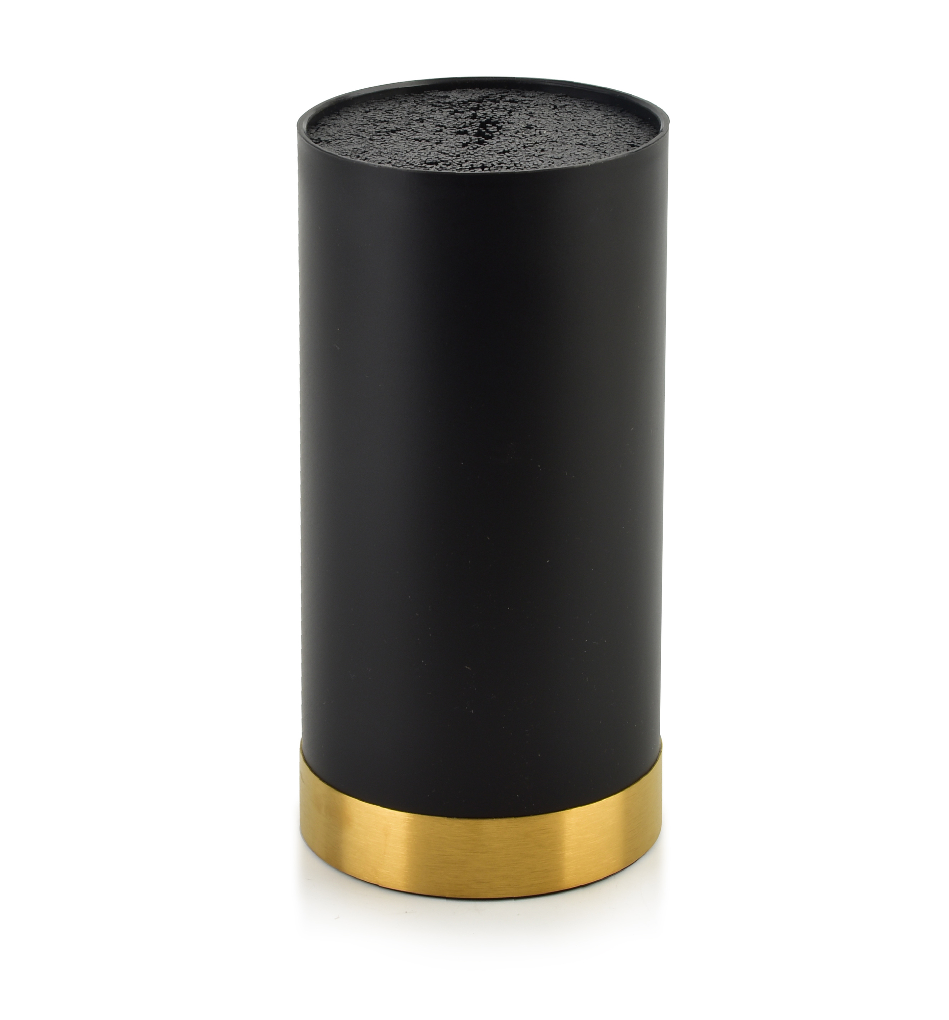 Tento stojan umožňuje bezpečné a přehledné uložení nožů, čímž zvyšuje komfort při přípravě pokrmů a zároveň chrání ostří nožů před poškozením. Jeho robustní zlatá základna poskytuje stabilitu, zatímco černý vnitřní blok udržuje nože pevně na místě. Praktický design a stylové provedení se dokonale hodí do každé kuchyně.