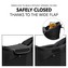 - Uzavírání: široká klopa + boční otvory pro lahvičky