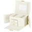 Šperkovnice SPRINGOS CELESTE bílá je elegantní a praktický organizér na šperky, který udrží vaše doplňky přehledně uspořádané a chráněné. Díky zámku s klíčem jsou vaše cennosti v bezpečí, zatímco rukojeť pro snadné přenášení umožňuje pohodlnou manipulaci i při cestování. Uvnitř naleznete přihrádky na náušnice a prsteny, které pojmou mnoho doplňků, a také prostorné přihrádky pro uložení dalších šperků. Součástí je i zrcátko, které oceníte při každodenním výběru a kombinování šperků.