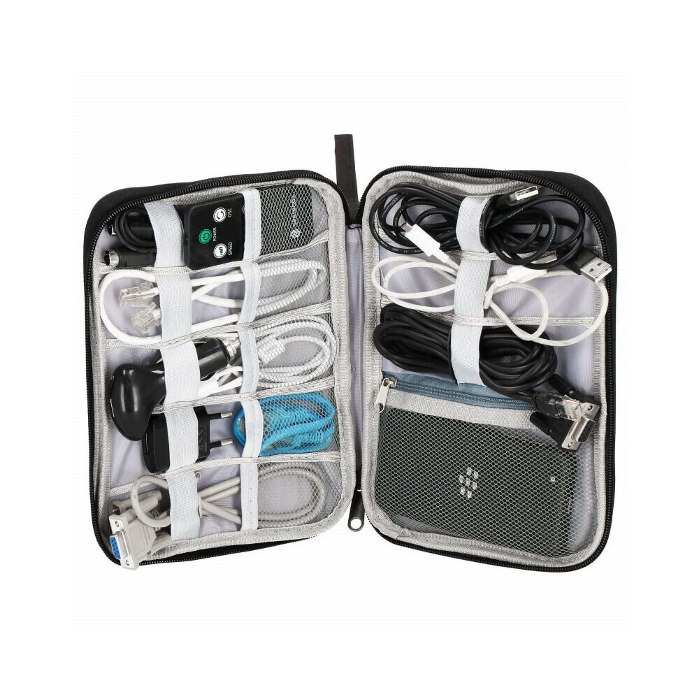 Každý z nás zná ten pocit podráždění při řešení zasukovaných kabelů, shánění USB flash disku, paměťových karet nebo nabíječky telefonu. Extrémně praktické a kompaktní pouzdro na drobnou elektroniku je skvělým řešením. Díky němu můžeme mít vše po ruce v případě cestování, ale i hledání konkrétní věci.