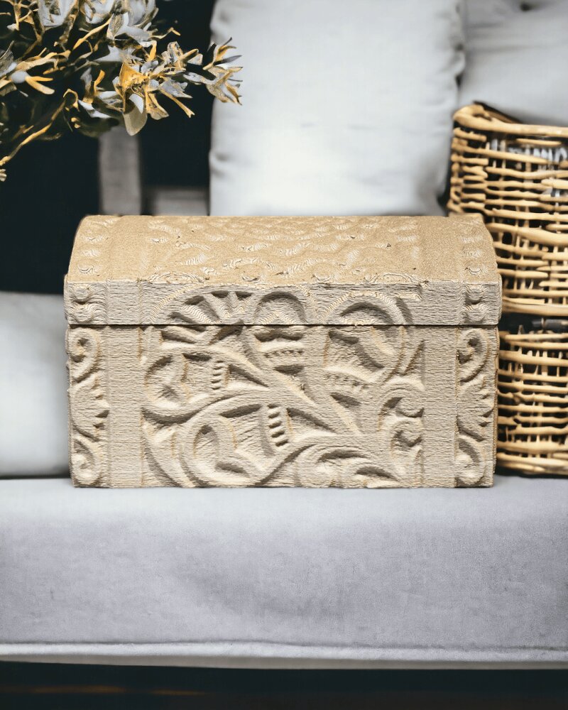Šperkovnice, krabička zdobená vyřezávanými motivy, vytvořená pomocí 3D tisku, je elegantním a originálním řešením pro uskladnění vašich šperků. Každý detail této krabičky je pečlivě zpracován s využitím moderních technologií 3D tisku, což dodává výrobku jedinečný vzhled. Vyřezávané motivy dodávají krabičce speciální šarm a přitahují pozornost. Tato šperkovnice je ideálním místem pro uložení vašich šperků a zároveň působí jako dekorativní prvek na vašem stole, komodě nebo nočním stolku. S touto krabičkou budou vaše šperky nejen dobře uspořádány, ale budou mít i stylové a vkusné uložení.