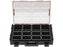 Organizér s odolným polykarbonátovým krytem určeným k uložení drobného příslušenství, 12 vyjímatelných přihrádek na drobné předměty, přizpůsobené k zavěšení na stěny nářadí.