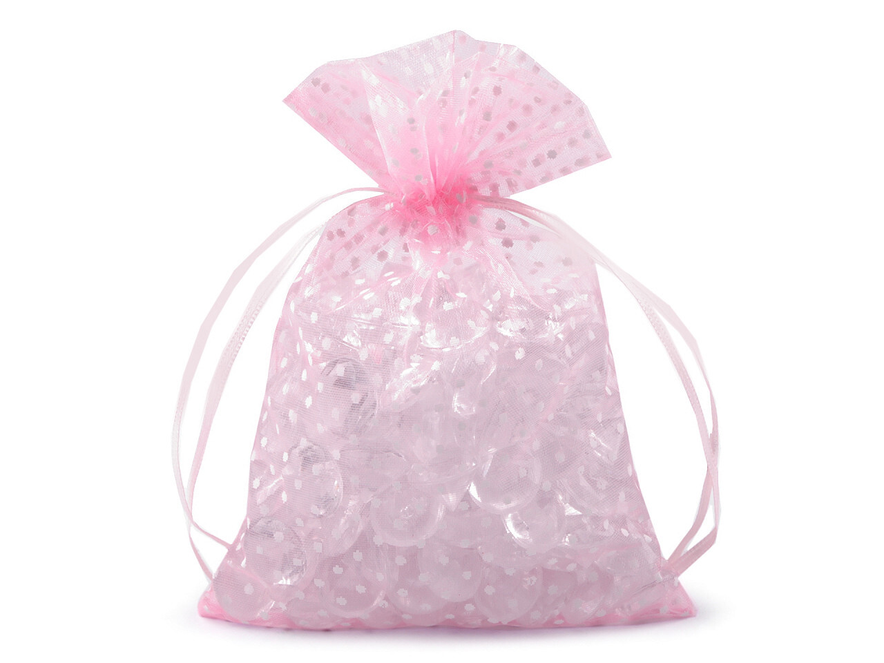 Dárkový pytlík puntíky 13x18 cm organza - 100 ks - 6 růžová sv.