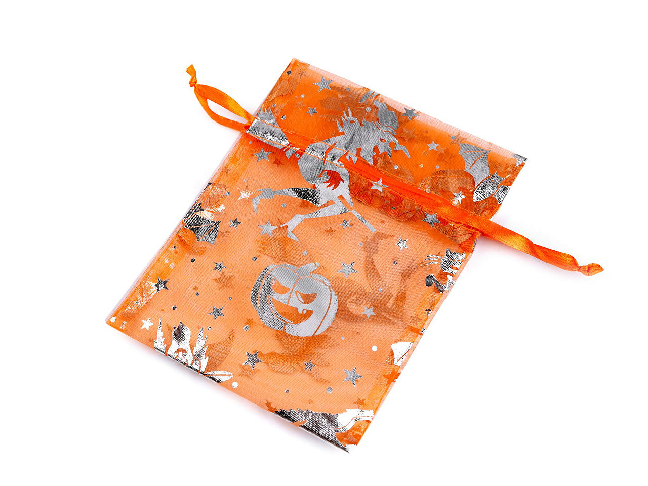 Dárkový pytlík čarodějnice / Halloween 13x18 cm organza - 10 ks - 1 oranžová